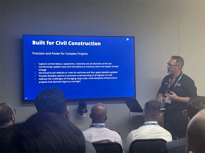 A central highlight of Trimble Dimensions Australia was the range of BuildingPoint-led sessions that showcased how connected technology is shaping the industry. These presentations covered pressing themes such as sustainability, reality capture, stadium delivery, digital workflows, and the power of fully connected construction ecosystems.