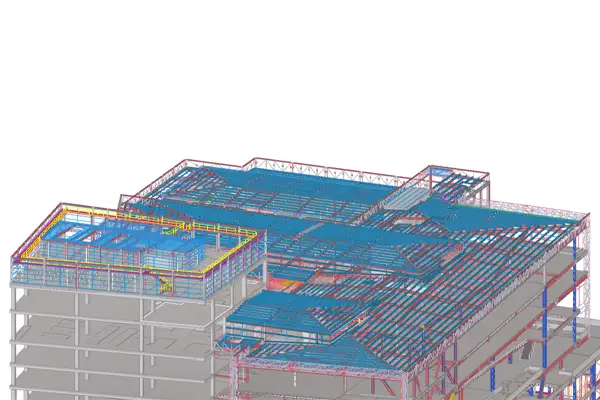 CSD Group leveraged Tekla Structures and Trimble Connect to drive both design accuracy and construction planning, using the models to resolve clashes, coordinate complex service interfaces and pre-validate crane locations and lift sequences.