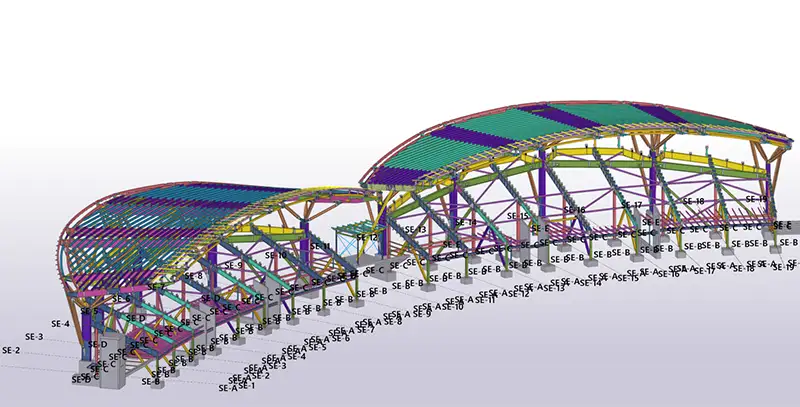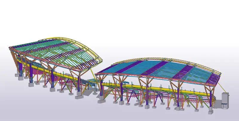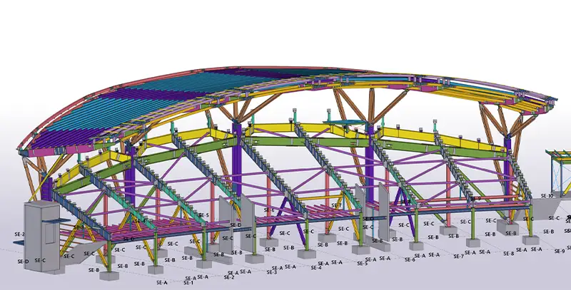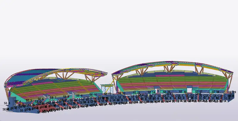 Using Tekla Structures and Tekla PowerFab, Plinius delivered the structural steel and glulam timber roof assemblies with precise modular coordination. Off-site pre-assembly, BIM clash detection, and model-based sequencing enabled sub-3 mm tolerances during transport and installation, while seamless integration with precast seating modules ensured a clash-free build. The project demonstrates how advanced Tekla workflows can drive efficiency, traceability, and accuracy on complex, high-profile sports infrastructure.